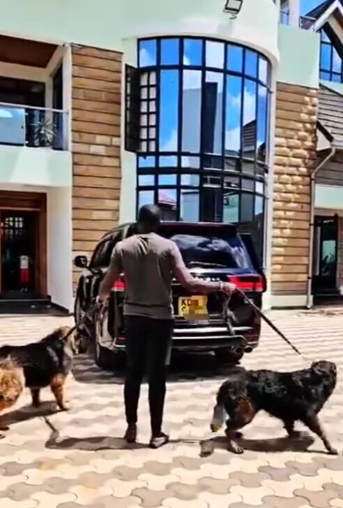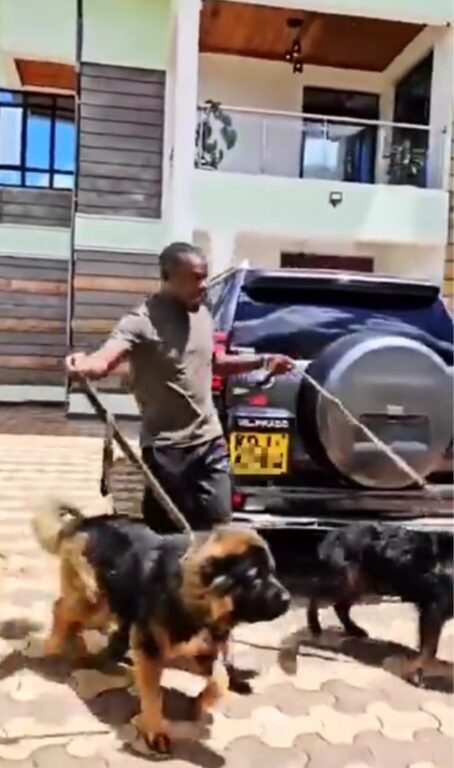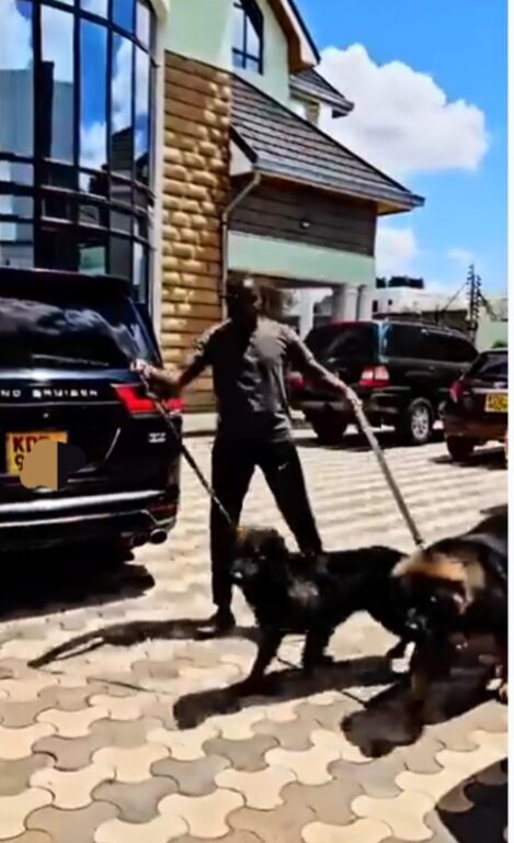 A video has emerged showing Osoro walking around two German shepherd dogs in palatial compound hosting a modern home.