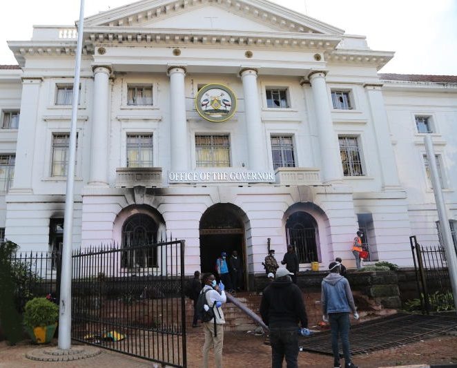 According to witnesses angry protestors chased away County askaris outside the governor’s office allowing them to gain entry and set some sections on fire.
