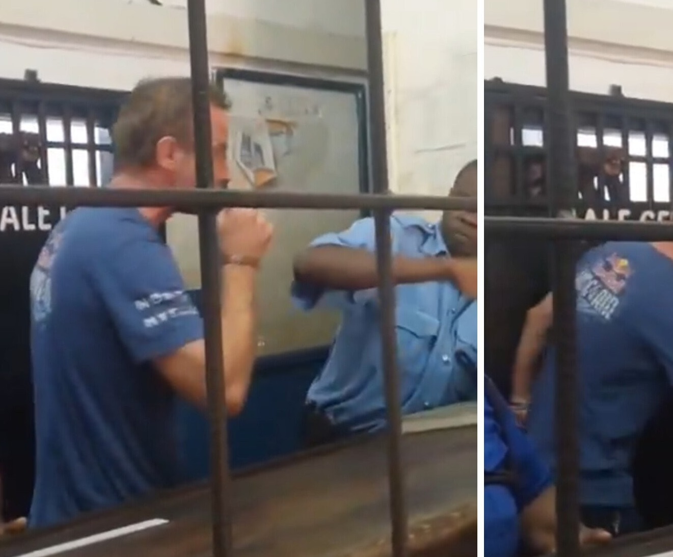 In a viral video doing rounds on the internet, Horst was heard hurling insults and spraying mucus at a calm officer at Diani Police Station.