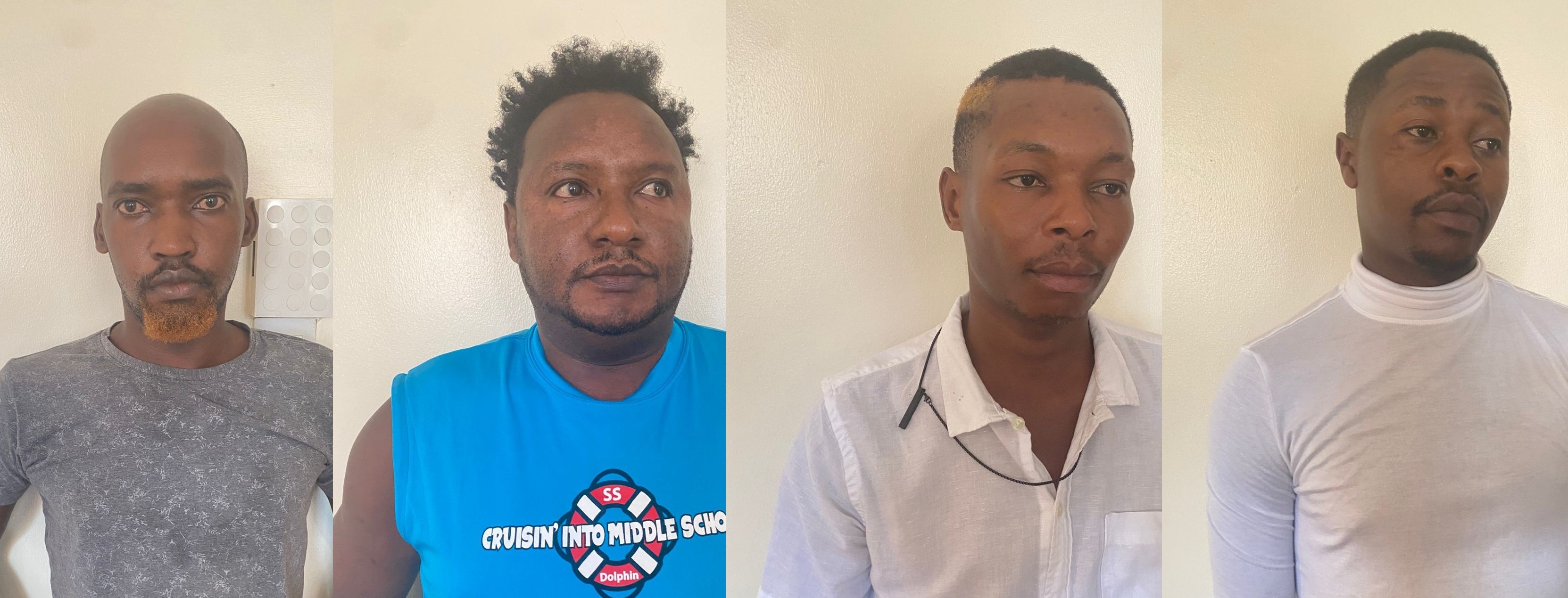 Bernard Mbusu, Isaac Kinoti Kobia, Evans Muthengi Mutaki and Kelvin Mwangi Njoroge were apprehended at Ideal Apartments in Ukunda.